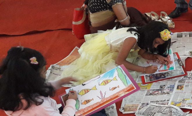 ଭୁବନେଶ୍ୱର ୟୁନିଟ-୩ ପ୍ରଦର୍ଶନୀ ପଡିଆରେ ଚାଲି ଥିବା ରାଜଧାନୀ ପୁସ୍ତକ ମେଳାର ଏକ ଷ୍ଟଲ୍ ରେ ରବିବାର ସନ୍ଧ୍ୟାରେ ଛୋଟ ପିଲାମାନେ ନିଜ ଅଭିଭାବକଙ୍କ ଉପସ୍ଥିତିରେ ଚିତ୍ର ଆଂକିବାର ଆନନ୍ଦ ନେଉଛନ୍ତି…ଫଟୋ: ଅଭିପ୍ସା ପୁଜାରୀ