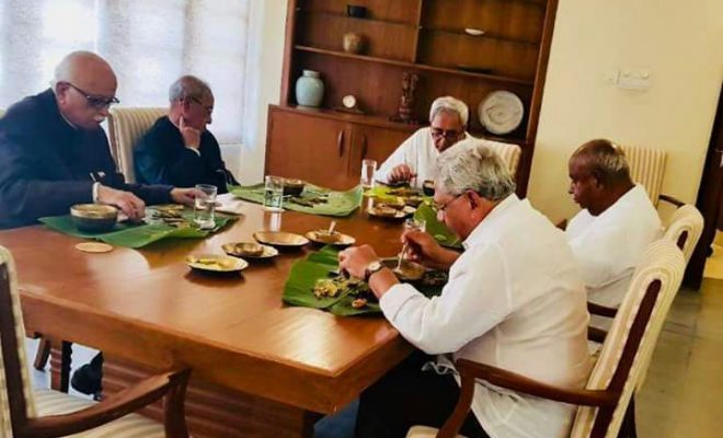 ‘ଦି ଟଲ୍ ମ୍ୟାନ୍ ବିଜୁ ପଟ୍ଟନାୟକ’ ପୁସ୍ତକ ଉନ୍ମୋଚନ ପାଇଁ ଆସିଥିବା ଭାରତର ପୂର୍ବତନ ରାଷ୍ଟ୍ରପତି ପ୍ରଣବ ମୁଖାର୍ଜୀ, ପୂର୍ବତନ ପ୍ରଧାନମନ୍ତ୍ରୀ ଦେବ ଗୌଡା, ବରିଷ୍ଠ ବିଜେପି ନେତା ଲାଲକୃଷ୍ଣ ଆଡଭାନୀ ଓ ସିପିଏମ୍ ସର୍ବଭରତୀୟ ସାଧାରଣ ସଂପାଦକ ସୀତାରାମ ୟାଚୁରୀ ଶନିବାର ମଧ୍ୟାହ୍ନରେ ‘ନବୀନ ନିବାସ’ରେ ଓଡ଼ଶା ମୁଖ୍ୟମନ୍ତ୍ରୀ ନବୀନ ପଟ୍ଟନାୟକଙ୍କ ସହ ମଧ୍ୟାହ୍ନ ଭୋଜନ କରୁଛନ୍ତି…