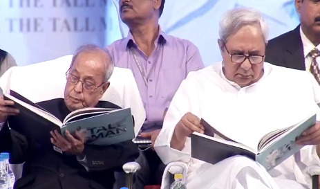 ‘ଦି ଟଲ୍ ମ୍ୟାନ୍ ବିଜୁ ପଟ୍ଟନାୟକ’ ପୁସ୍ତକ ଉନ୍ମୋଚନ ଅବସରରେ ଭାରତର ପୂର୍ବତନ ରାଷ୍ଟ୍ରପତି ପ୍ରଣବ ମୁଖାର୍ଜୀଙ୍କ ସହ ଓଡ଼ଶା ମୁଖ୍ୟମନ୍ତ୍ରୀ ନବୀନ ପଟ୍ଟନାୟକ
